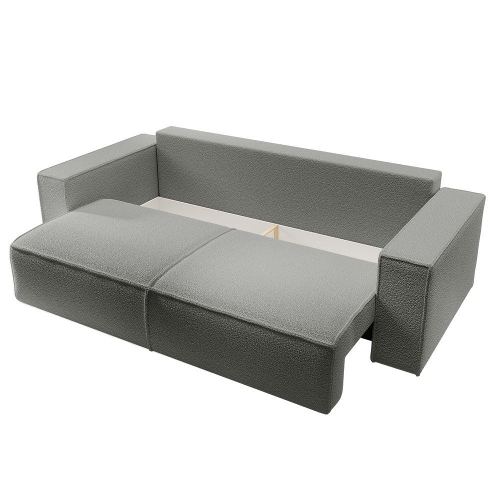BONA trivietė sofa-lova sukurta specialiai tokiems reikliems vartotojams kaip jūs! Balduose sumontuota sėdynė, užpildyta gofruotomis spyruoklėmis ir lanksčiomis poliuretano putomis. Ši sofa taip pat turi  lengvai naudojamą išskleidžiamą mechanizmu, galite greitai ir efektyviai paversti ją patogia lova, kurioje tinkamai pailsės nakvoti pakviesti svečiai. Visumą papildo erdvi patalynės dėžė, skirta tekstilei ar rečiau naudojamiems smulkmenoms susidėti.